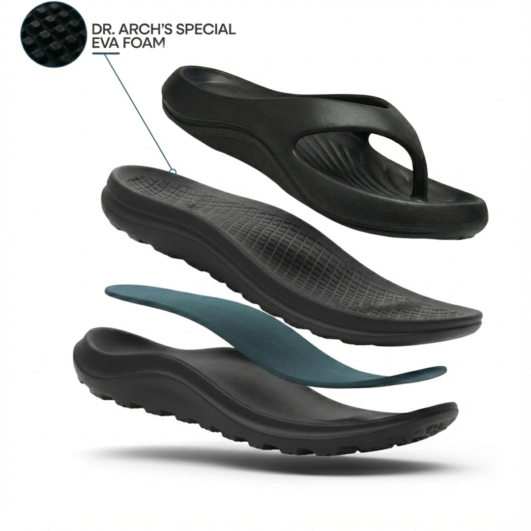 Created for everyday Aussie conditions from scorching beach sand to everyday home wear, Dr Arch's Speciality EVA foam stays cool, won't shrink or wrap in heat, and provides superior grip when wet. Built to handle the reality of Australian conditions without losing its pain-relieving support.